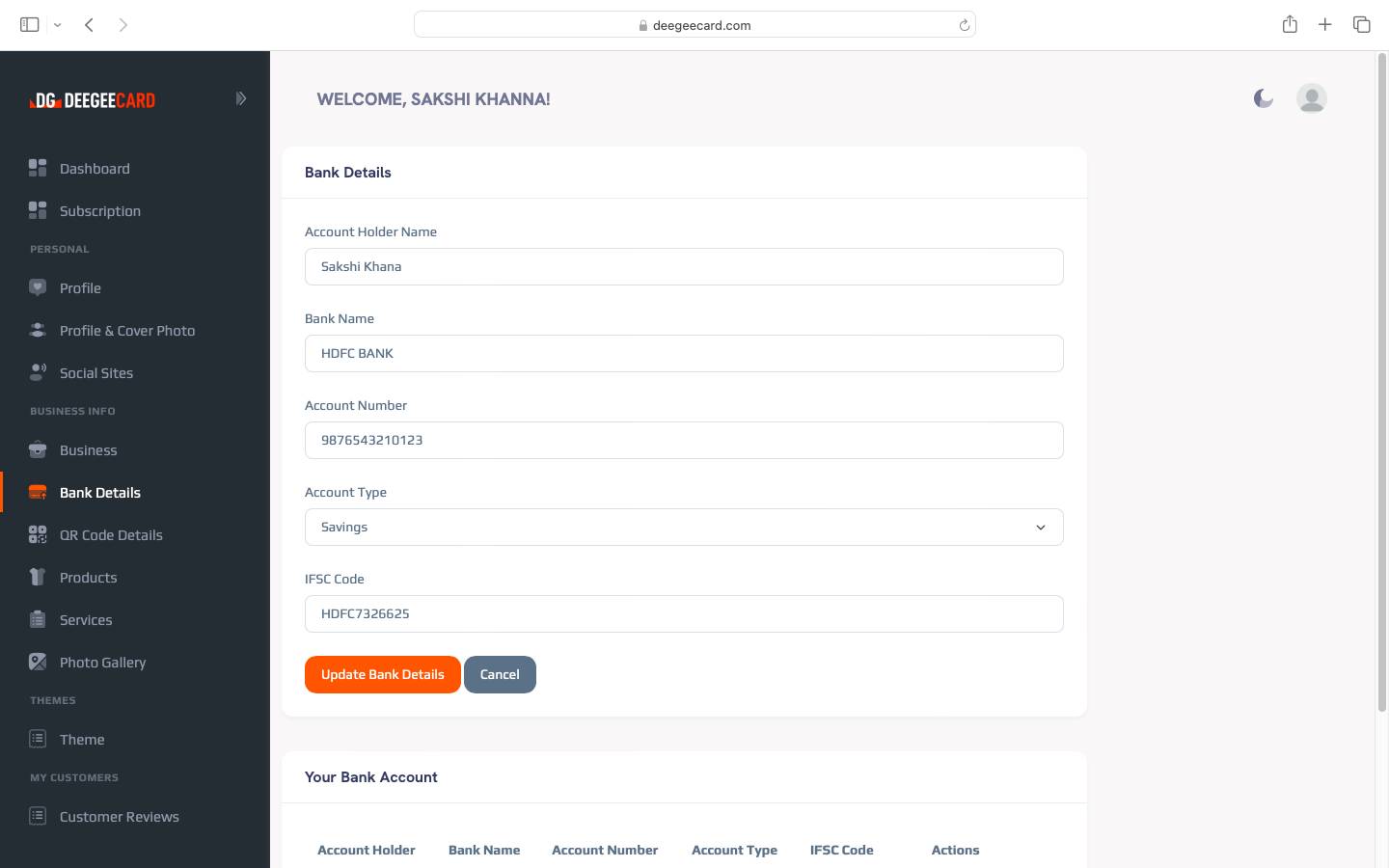 - Navigate to 'Bank Details' tab or 'QR Code Details' tab
