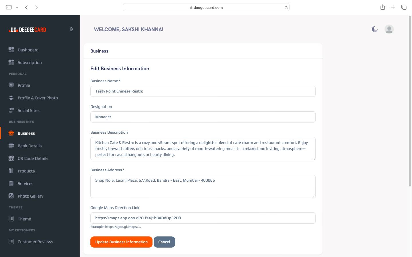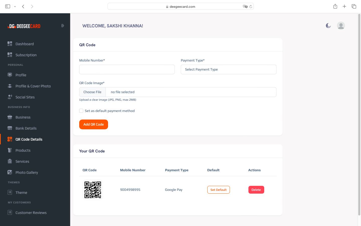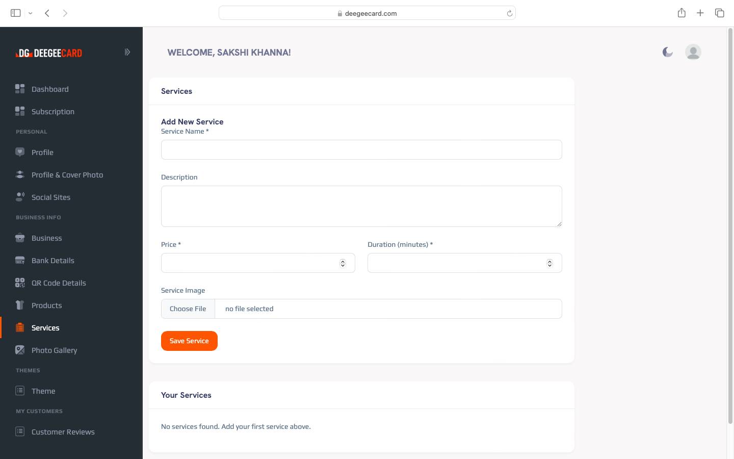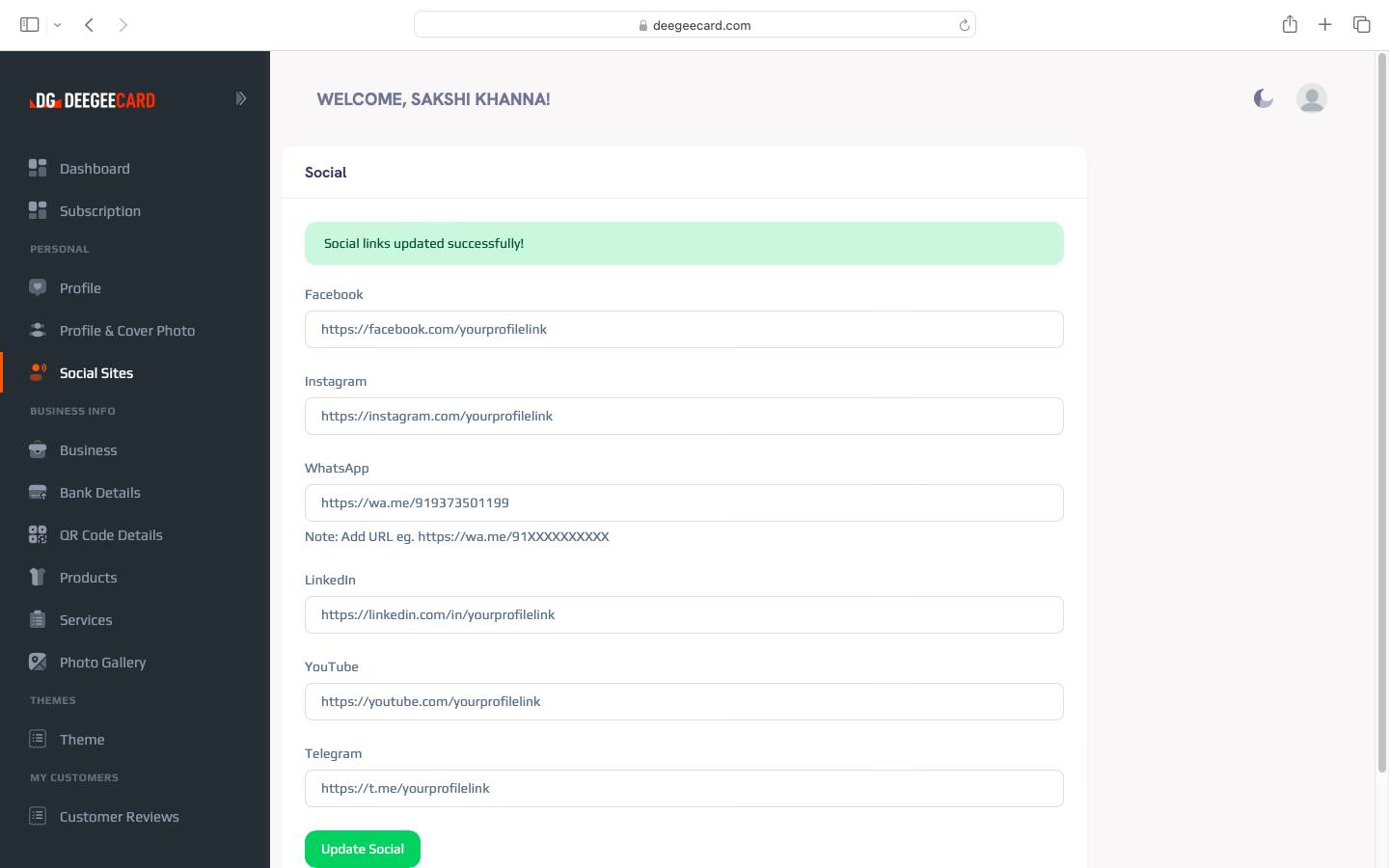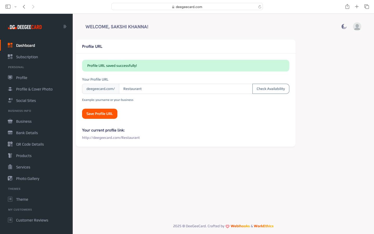 - Your profile URL will be: deegeecard.com/yourname or deegeecard.com/companyname