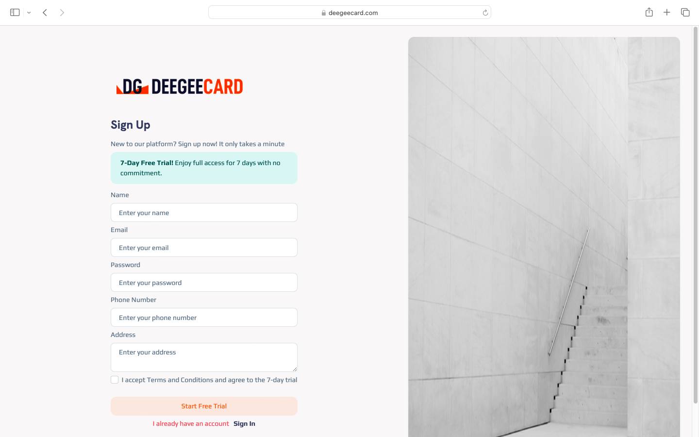 - Your profile URL will be: deegeecard.com/yourname or deegeecard.com/companyname